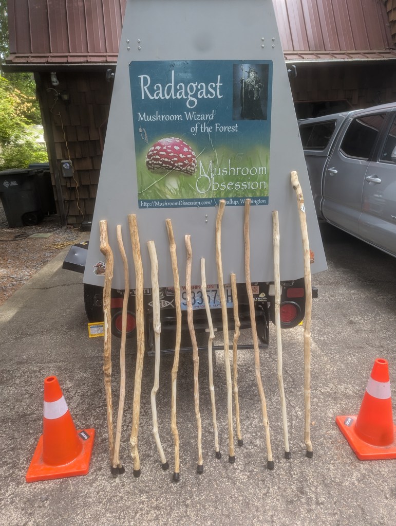 A good friend (who is quite artistic) got me started by giving me a treasured gift of a lovely Devil’s Club walking stick that he had whittled for me. It even had a carved hand-grip and beautifully painted depictions of my favorite mushrooms!